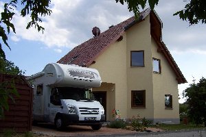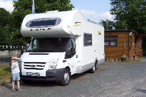 Ein Wort zuvor... Sommer 2007: Unsere Kanada-Reise lag fast drei Jahre zurück, die letzten Urlaubsreisen hatten uns zweimal an die Ostsee geführt und in diesem Jahr sollte es in die Lüneburger Heide gehen. Kurz: Das Fernweh meldete sich mit Nachdruck und die Tatsache, dass unser Sohn im nächsten Jahr in die Schule kommen sollte, machte die Dringlichkeit einer für längere Zeit letzten Fernreise außerhalb der Feriensaison nur noch deutlicher. Inzwischen hatten wir aber ein weiteres Mal Nachwuchs bekommen. Unsere Tochter Lisa war jetzt etwa ein halbes Jahr alt, aus unserer Sicht für eine stressfreie Flugreise im nächsten Jahr vielleicht doch noch etwas zu klein. Also berieten wir, was wohl für Eltern und Kinder ein gleichsam interessantes Urlaubsziel sein könnte und kamen dabei recht schnell auf Skandinavien. Auch die Art des Reisens war schnell klar: Wohnmobil mit Kind, damit hatten wir schon sehr gute Erfahrungen. Es wurden Reiseführer und Internet-Foren durchforstet und nach einigem Hin und Her war unser Urlaubsziel für 2008 klar: Norwegen sollte es sein! Es folgte die Anschaffung weiterer länderspezifischer Reiseführer, Berichte und Blogs im Web wurden durchforstet und so entstand Stück für Stück eine Reiseroute, die ohne viele nervig lange Fahrtage einen durchaus repräsentativen Eindruck von Norwegen vermitteln könnte. Zusätzlich kaufte Andreas noch einen kleinen Norwegisch-Sprachkurs auf CD, den er in den folgenden Wochen oft auf seinem Arbeitsweg im Auto hörte und sich so einige Grundkenntnisse aneignete. Im Januar buchten wir das Wohnmobil bei dem Leipziger Familienunternehmen, das wir bereits für unsere ersten Wohnmobilerfahrungen im Frühjahr 2004 ausgewählt hatten. Dadurch waren wir dort Wiederholungstäter, was uns einen entsprechenden Rabatt verschaffte. In den folgenden Monaten wurden noch Details der Reise verfeinert und Anfang Juni war es dann endlich soweit: Das Abenteuer Norwegen konnte beginnen… 1. Tag: Abholung Wohnmobil Hurra, es ist soweit. Die letzten Tage hatten noch einmal ordentlich für Wirbel gesorgt. Zuerst musste Andreas aufgrund einer Sprunggelenkverletzung sportlich etwas kürzer treten und dann zog er sich noch eine heftige Blockierung der Rückenmuskulatur zu. Aber alles kam rechtzeitig wieder ins Lot und auch die Arbeit wurde halbwegs fertig. Umso mehr waren wir jetzt aber wirklich urlaubsreif. Um 14:30 Uhr holten wir Lisa und Vincent aus dem Kindergarten ab und fuhren mit ihnen zur Wohnmobilvermietung. Die Übernahme des gut sieben Meter langen Gefährtes auf Ford-Transit-Basis dauerte mehr als eine Stunde und bescherte uns einige angenehme Überraschungen. Im Gegensatz zu dem Fiat, den wir 2004 bekommen hatten, war hier vieles großzügiger gestaltet und besser durchdacht. Für die Kinder gab es im Heck ein üppiges Doppelstockbett, dessen oberer Teil mit einem Netz gesichert werden konnte. Beim unteren Bett gab es eine Schiebetür, mit der ein Herausfallen verhindert werden konnte. Das Doppelbett im -extra überhöhten- Alkoven war sehr bequem und bot mehr als ausreichend Platz für zwei Erwachsene. Auch sonst gab es eigentlich alles, was man in drei Wochen Campingurlaub brauchen könnte.