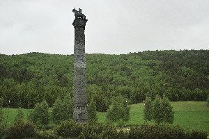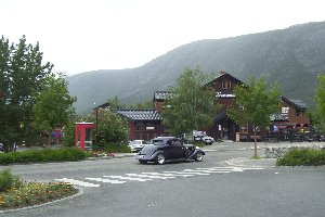 An der Sognefjellshytter wollten wir noch einmal rasten und einen Fotostopp einlegen, aber ein plötzlicher Wetterumschwung bewegte uns doch zur unverzüglichen Weiterfahrt. Wir retteten uns ins Tal und hielten kurz am Elveseter-Hotel. Das Wahrzeichen dieses, 25 Kilometer vor Lom gelegenen, Anwesens ist die 32 Meter hohe Sagasäule, auf der Szenen aus der Geschichte Norwegens von der Wikingerzeit bis zur Unabhängigkeit im Jahre 1814 dargestellt sind. Doch das Wetter hatte uns rasch eingeholt und so fuhren wir weiter bis nach Lom, wo wir gegen 17 Uhr eintrafen.