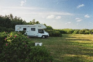 5. Tag: Grindstad – Hirtshals Heute sollte ein reiner Fahrtag werden, ohne besondere Zeitvorgaben und Highlights. Wir ließen es also ruhig angehen, schliefen bis 8:30 Uhr und holten dann frische Brötchen und ein paar süße Teilchen für den Nachmittag im Campingplatzshop. Nach dem Frühstück packten wir alles zusammen, zahlten unseren Platz und die Brötchen und fuhren gegen 10:45 Uhr los. Da sowohl unsere Vorräte als auch der Tankinhalt unseres Wohnmobils zur Neige ging, suchten wir zunächst nach einer Einkaufs- und Tankmöglichkeit. In Give fanden wir gleich hinter dem Ortseingang einen Netto-Markt, der aber leider keine Kartenzahlung anbot. Also fuhren wir noch ein Stück und entdeckten kurz darauf ein Einkaufszentrum mit angeschlossener Tankstelle. Hier wurden auch EC- und Kreditkarten akzeptiert und so wurde erst mal eingekauft und getankt. Gegen 12 Uhr setzten wir unsere Fahrt fort. Es war unglaublich windig und so war das Fahren recht anstrengend, da es gar nicht einfach war, das Wohnmobil in der Spur zu halten. Später zogen immer mehr Wolken auf und es gab einzelne Schauer. Bei Hobro machten wir Mittagspause auf einem Rastplatz, um 15:30 Uhr fuhren wir weiter in Richtung Hirtshals. Der Wind ließ nicht nach und uns kamen erste Bedenken bezüglich unserer Überfahrt am nächsten Tag. Wir hatten gelesen, dass ab einer bestimmten Windstärke die Fähre über den Skagerrak aus Sicherheitsgründen nicht fahren würde, alle Alternativen wären in jedem Fall mit Zeit und Fahrerei verbunden. Gegen 17 Uhr erreichten wir Hirtshals und folgten den Ausschilderungen zum Campingplatz. Es ging am Hafen und dem Nordseemuseum (das Punkt 17 Uhr seine Türen schloss) vorbei, bis wir vor einem Schild standen, welches die Weiterfahrt für Fahrzeuge über 1,6t untersagte. Da unser Wohnmobil, wie andere sicher auch, aber nahezu 3,5t auf die Waage brachte, konnte dies unmöglich der richtige Weg sein. Wir wendeten also und suchten bis zum Ortseingang zurück nach anderen Hinweisschildern, konnten jedoch keine entdecken. Also fuhren wir wieder den bereits bekannten Weg, auf dem uns schon andere ratlose Wohnmobilfahrer entgegen kamen. Schließlich fragten wir einen Jogger, ob wir auf dem richtigen Weg zum Campingplatz seien. Der bestätigte uns, dass wir der Straße folgen sollten und nach einigen Kilometern den Platz finden würden. Also ignorierten wir das Schild, fuhren weiter und fanden uns daraufhin auf einer immer schmaler werdenden Straße durch den Wald. Irgendwann kamen wir über eine kleine Brücke, die offensichtlich der Grund für die Gewichtsbeschränkung war. Nachdem wir noch einmal eine Rollerskaterin nach dem Weg gefragt hatten, kamen wir schließlich an der Rezeption des Kjul Camping Platzes an und checkten für eine Nacht ein. Der Platz war sehr weitläufig auf einer zum Meer hin geneigten Wiese mit freiem Blick auf das Wasser.