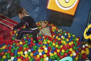 Wir staunten nicht schlecht, wie lang der Strom an PKW´s, LKW´s und Wohnmobilen anhielt, die aus dem Inneren der Fähre ans Tageslicht kamen. Dann begann das Boarden. Wir fuhren unser Wohnmobil in die uns zugewiesene Reihe im Bauch des Schiffes und verlustierten uns dann auf dem Passagierdeck. Zunächst erkundeten wir die Aufenthaltsräume, Cafés und Shops und kamen schließlich zur Spielecke, wo wir erst einmal eine Weile blieben. Gegen 13:00 Uhr verließ die Fähre mit etwa 45 Minuten Verspätung den Hafen von Hirtshals und wir bekamen recht bald den bei diesem Wind herrschenden Seegang zu spüren. Andreas wurde etwas flau im Magen, was aber nach etwa 20 Minuten, in denen wir neben dem Glaskasten mit dem Kinder-Bällebad saßen, wieder nachließ. Wir liefen dann noch etwas durch das Schiff, schauten uns im pünktlich nach dem Ablegen geöffneten Duty-free-Shop um und suchten uns dann eine Sitzgelegenheit im Aufenthaltsbereich, denn inzwischen war Doreen infolge des Rollens des Schiffes etwas flau geworden. Lisa bekam davon in ihrem Buggy kaum etwas mit und schlief nach einer kleinen Snackpause bald ein. Andreas spazierte mit Vincent noch ein bisschen auf dem Deck umher und warf auch mal einen Blick nach draußen, bis auch Vincent über leichte Übelkeit klagte. Die beste Ablenkung vom Schwanken des Schiffes gab es sicher beim Herumtollen im Bälleparadies, also gingen Andreas und Vincent für den Rest der Fahrt wieder dorthin.
