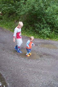 Gegen 19:30 Uhr erreichten wir endlich Odda und fuhren zum schon recht gut gefüllten Campingplatz. Wir bekamen noch einen schönen Stellplatz am Bach, aber leider war kein Stromanschluss mehr verfügbar. Was uns aber noch weniger gefiel war, dass dieser Platz der bisher erste war, auf dem es keinen Spielplatz gab. Nach der langen Fahrt war das natürlich besonders schade, aber die Kinder trösteten sich beim Herumpatschen in den Regenpfützen. Vincent bespritzte sich dabei total und Lisa fiel schließlich sogar ganz hinein, also mussten sie sich vor dem Abendbrot noch einmal umziehen. Wir fragten dann noch an der Rezeption nach einer Möglichkeit, die vorgestern geprellte Maut nachzubezahlen und erfuhren, dass man dies an allen ESSO (und eventuell auch anderen großen Tankstellen) nachholen könnte.