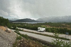 Wir leerten noch den Abwassertank des Wohnmobils und verließen gegen 12 Uhr schließlich den Zeltplatz. Die Straße stieg nun stetig an und in der Ferne konnte man einzelne Schneefelder auf den Berghängen erkennen.