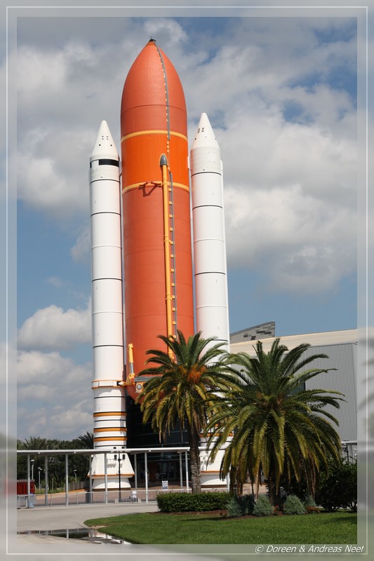 22.10.2013: Space, the final frontier... Die zweite Nacht in Florida war schon deutlich erholsamer. Auch, wenn Andreas und die Kinder bereits wieder zu Sonnenaufgang wach waren... Doreen konnte schon wieder sehr gut schlafen. Wir frühstückten gemütlich und waren gegen 10 Uhr abfahrbereit. Heute sollte es zum Kennedy Space Center nach Cape Canaveral gehen. Ursprünglich war für den 23.10.2013 der Start einer Delta IV Rakete mit einem GPS-Satelliten geplant. Aber wie es so oft ist, wurde der Start kurzfristig verschoben, so mussten wir unseren Besuch nicht mehr danach planen und konnten ihn daher einen Tag vorziehen. Für die knapp 100 Meilen brauchten wir etwa eineinhalb Stunden, so dass wir kurz vor Mittag vor Ort ankamen. An der Einfahrt zum Parkplatz schien gerade Schichtwechsel zu sein, zumindest hatten wir keine andere Erklärung, dafür, dass es fast eine Viertelstunde dauerte, bis wir durch waren, obwohl nur vier Autos vor uns standen. Inzwischen hatte sich schon eine riesige Fahrzeugschlange hinter uns gebildet, aber auf einmal ruckte es an und ging hintereinander weg. Verstehe einer die Amerikaner...