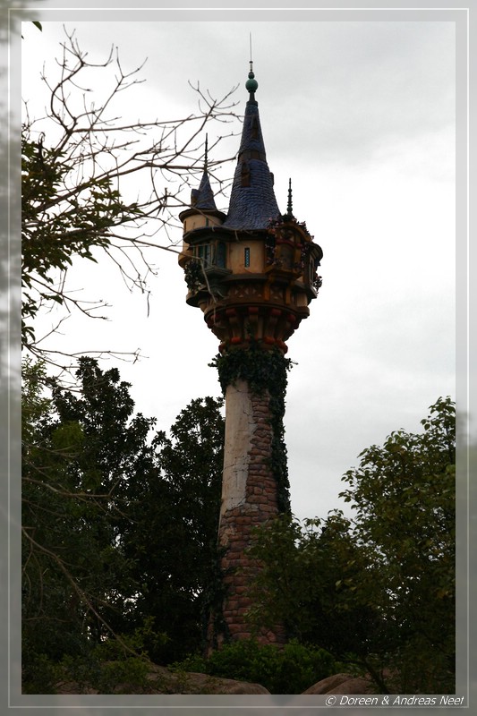 Wir bummelten vorbei am Liberty Square Riverboat ins Fantasy Land, warfen dort einen Blick auf den Rapunzel Tower und Lisa bettelte mit Hundeaugen, ob sie nicht doch das Rapunzelkleid aus dem ersten Shop als Souvenir haben könnte.